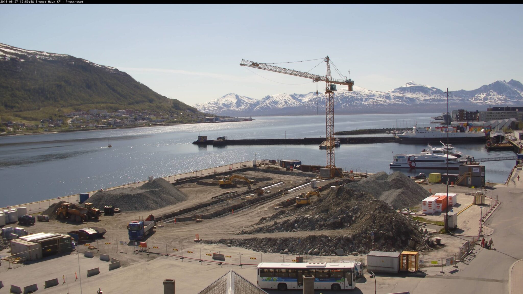 I løpet av mai måned har Prostneset utviklet seg til en anleggsplass og arbeidene med å få etablert fundamenter til bussterminalen er godt i gang.