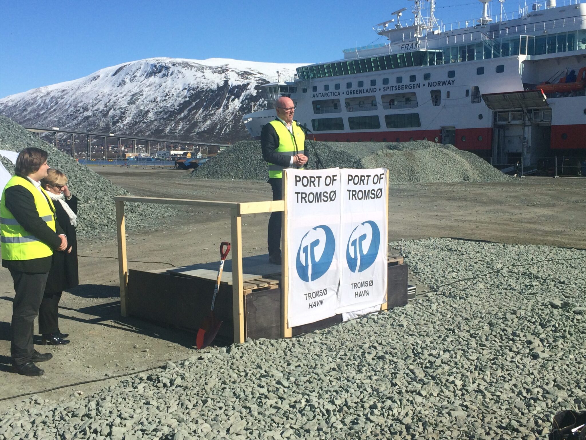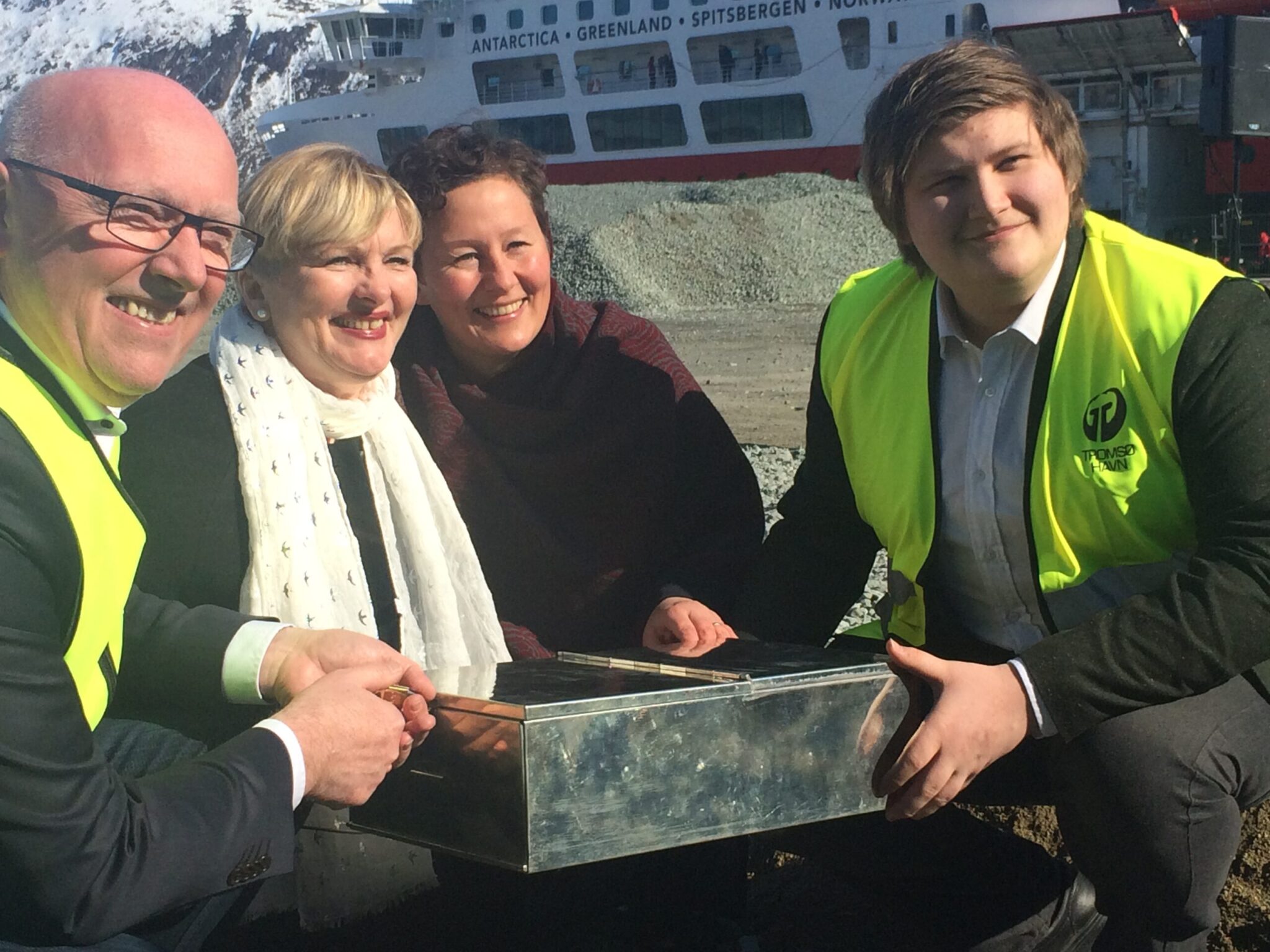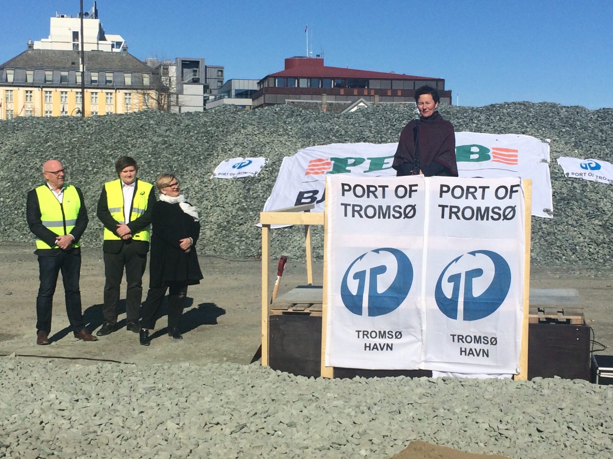 Både havnedirektør Halvar Pettersen, havnestyrets leder Frid Einarsdotter Fossbakk, Tromsø Ungdomsråds nestleder Martin Gamst Johnsen og Byrådsleder Kristin Røymo holdt flotte taler og uttrykte stor glede over denne store dagen for Tromsøregionen. Havneterminalen skal gi et bedre tilbud til både reisende og byens befolkning. Grunnsteinen ble lagt ned av Martin Gamst Johnsen, ungdomsrådets nestleder.